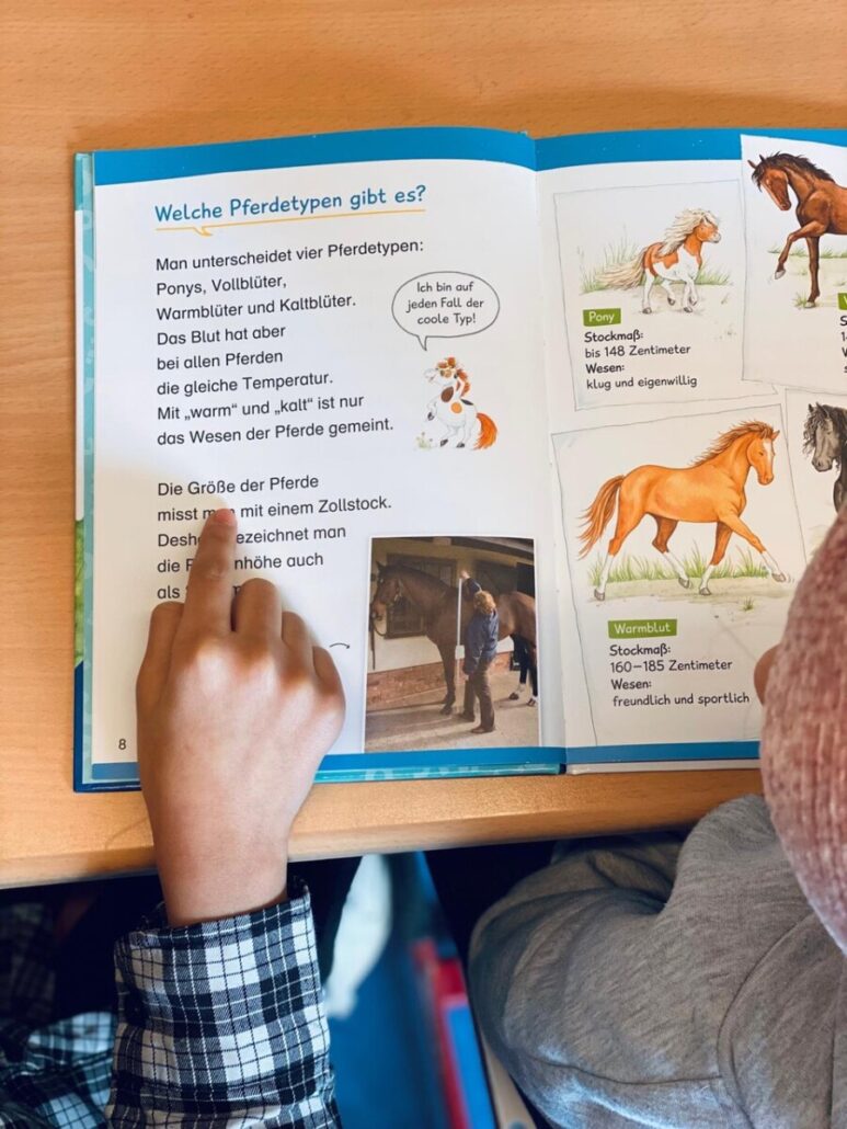 Das Lesen im Tandem macht Spaß und es verbessert die Leseflüssigkeit. Ein Kind ist Sportler*in und das andere Kind hilft als Trainer*in. Regelmäßig wird gemessen, wie sich die Kinder im Lesen verbessert haben, was sie sehr stolz macht.