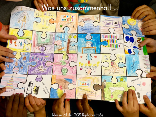 Die Klasse 2d hat am Foto- und Plakatwettbewerb “Was uns zusammenhält…” der Sozialraumkoordination Chorweiler teilgenommen und überlegt, was unsere Klasse zusammenhält. Die Kinder sind auf vielfältige Ideen gekommen und jedes Kind hat ein Puzzleteil zu seiner Idee gestaltet. Das Ergebnis ist toll geworden!