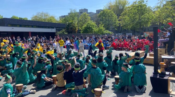 Während unserer Trommel-Projektwoche im April 2026 wurde es an der GGS Riphahnstraße besonders lebendig und rhythmisch. Alle Kinder tauchten gemeinsam in die Welt der Trommeln ein, lernten verschiedene Rhythmen kennen und sangen und tanzten – besonders gern gemeinsam mit Ben und Philipp, unseren „großen“ Trommelhelden . Mit viel Begeisterung und Teamgeist entstand im Laufe der Woche ein tolles Programm.