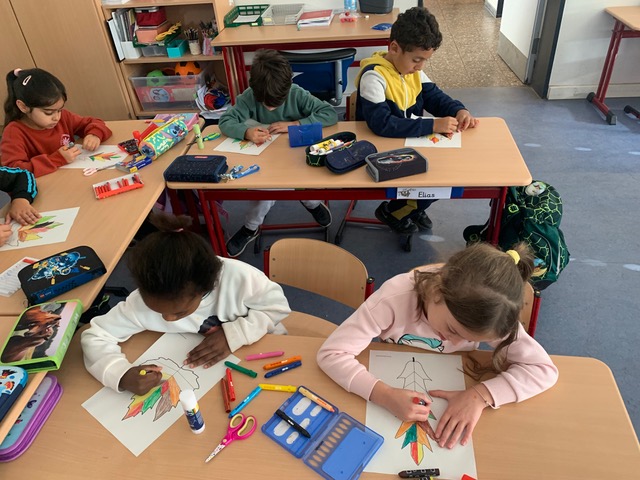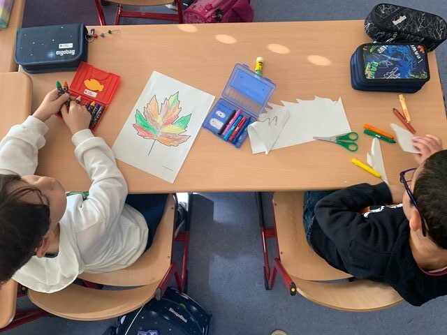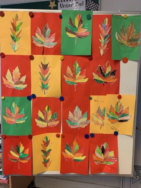 Die Faultiere haben im Kunstunterricht wunderschöne herbstliche Bilder gestaltet.