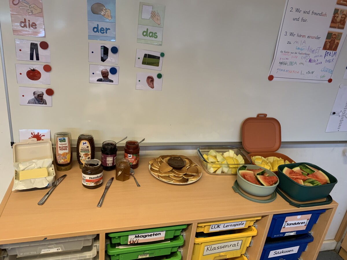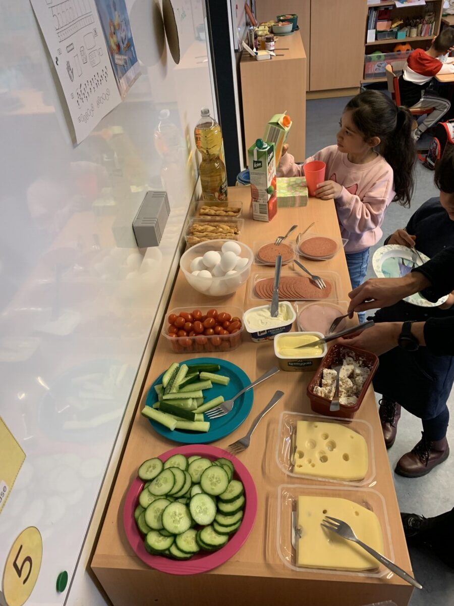 Vor den Herbstferien (den ersten Ferien der Faultiere überhaupt!) gab es ein leckeres Frühstück in der Klasse, das alle sehr genossen haben.